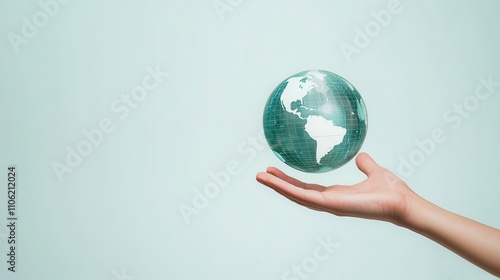 Hand Holding Transparent Globe Representing Global Connectivity, Technology, and Environmental Awareness on Soft Background