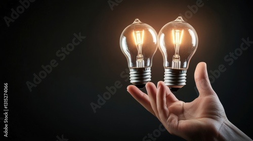 Hand Holding Two Glowing Light Bulbs on Dark Background