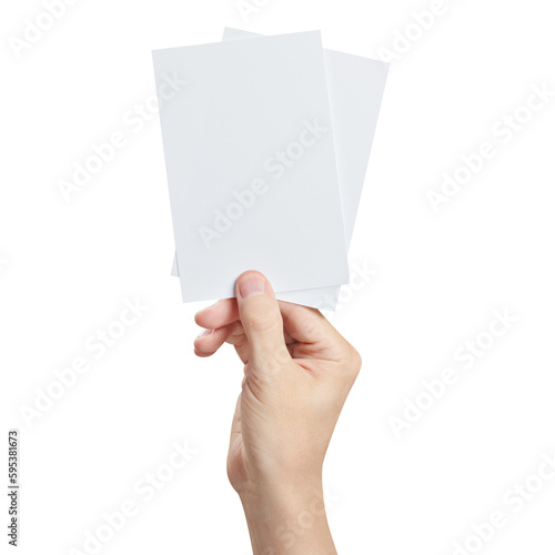 Hand holding two small sheets of paper (tickets, flyers, invitations, coupons, photocards, etc.), cut out