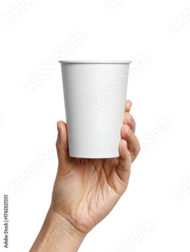 Hand Holding White Matte Coffee Cup — on transparent png Background