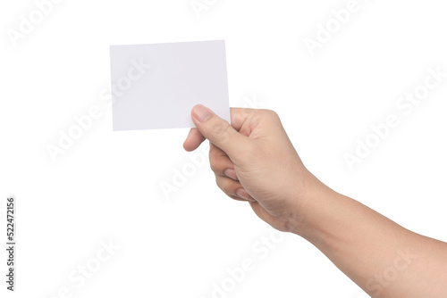 Hand holding white paper isolated on white with clipping path.