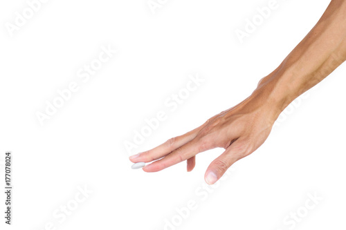 Hand holding white stones of chinese go (Board game) isolated on white background with clipping path. It the oldest board game continuously played today.