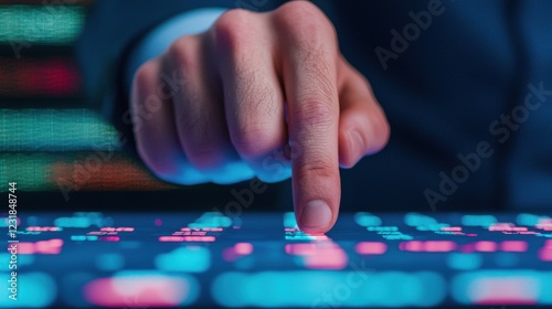 Hand Holographic bar stock Business Tablet concept. Closeup of Businessman s Hand Interacting with Digital Interface