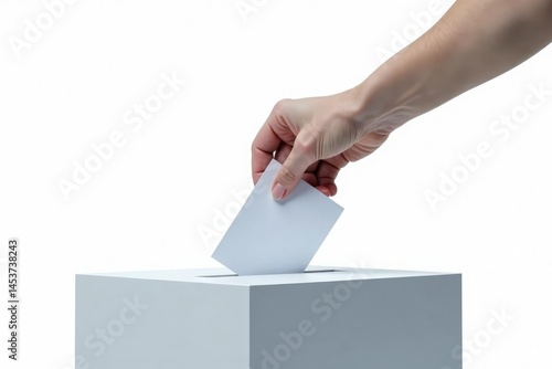 Hand inserting ballot into ballot box, isolated on white , government, texture, clean