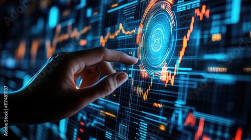 Hand Interacting With Futuristic Digital Data Display