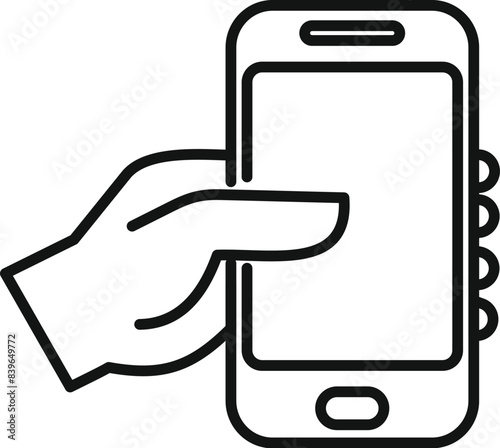 Hand is holding a smartphone, using the touch screen