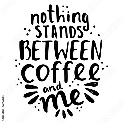 Hand lettering quote aboute coffee drawn by hand. Nothing stands between coffee and me phrase