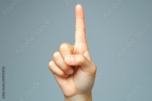 Hand making a peace sign, close-up, focus on the fingers, minimalistic background