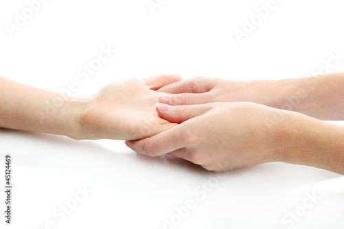 Hand massage, isolated on white