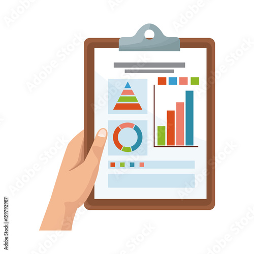 hand of business man holding clipboard growth graph concept vector illustration