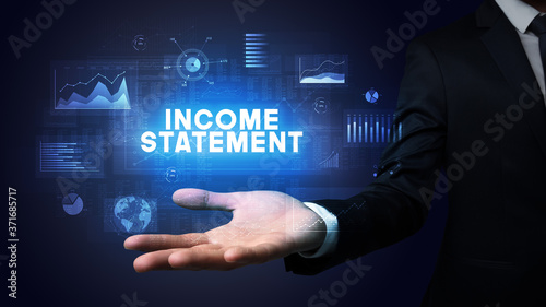 Hand of Businessman holding INCOME STATEMENT inscription, business success concept