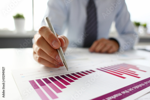 Hand of businessman in suit filling and signing with