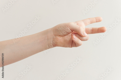 hand of the child on the white background.