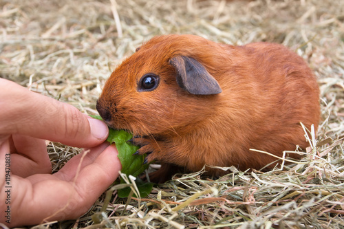 hand of woman feeding guinea pig