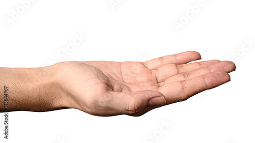Hand open and ready to help or receive. Gesture isolated on white background with clipping path.