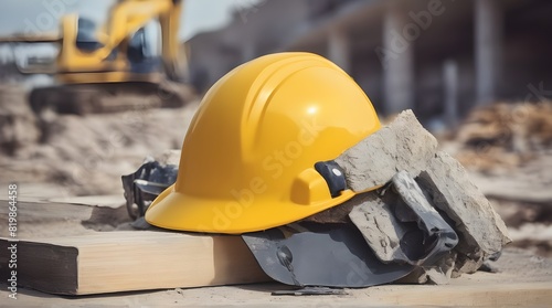 Hand over construction plans with yellow helmet and drawing tool. generative.ai