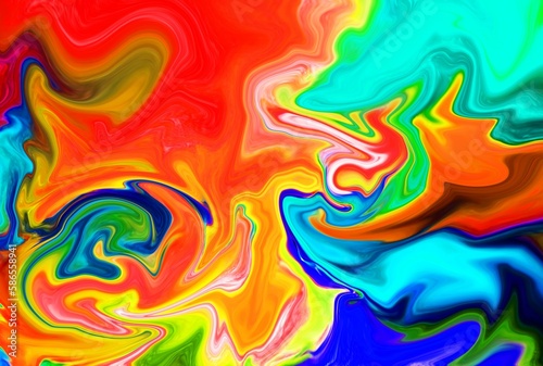 Hand Painted Background With Mixed Liquid Red blue orange Paints. Abstract Fluid Acrylic Painting. Marbled Colorful Abstract Background. Liquid Marble Pattern. Web Design.