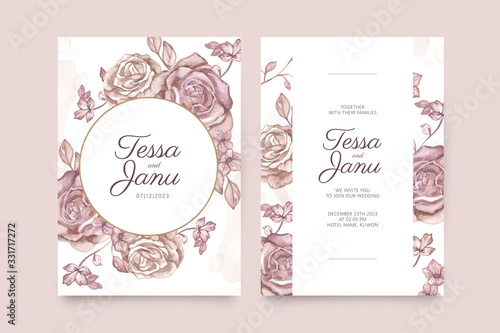 Hand painted floral golden watercolor of wedding card template