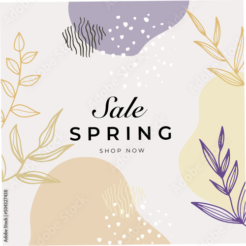 Hand painted watercolor and gold brush texture, Flower and botanical leaves hand drawing. Abstract art design for wallpaper, wall arts, cover, wedding and invite card.