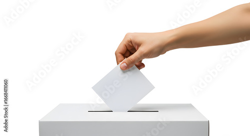 Hand Placing Blank Ballot in Box Concept on Transparent Background