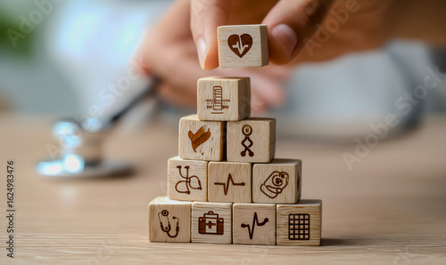Hand Placing Final Block on Medical Services Structure – Generative AI