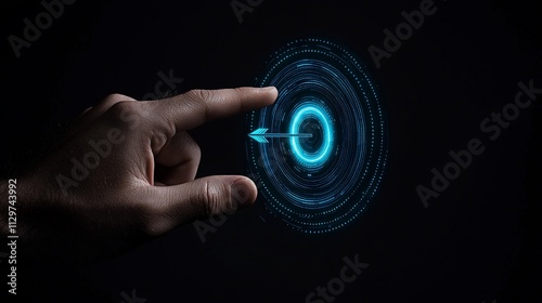 Hand pointing at a digital target with an arrow.