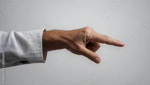 Hand pointing caucasian isolated on white background