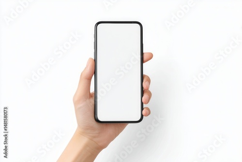 Hand presents a sleek smartphone mockup surrounded by a clean, bright white background, emphasizing modern design and digital innovation
