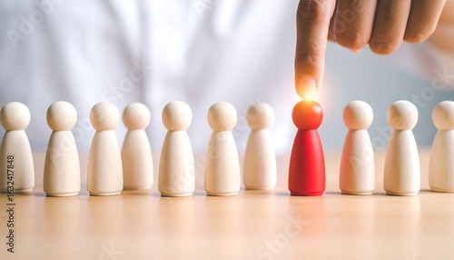 Hand Selecting a Glowing Red Figure Among Wooden Peg People