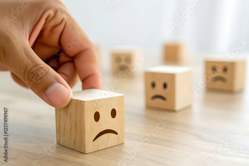 Hand Selecting Unhappy Wooden Blockset Choice Evalution Feedback and Customer