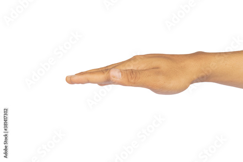 hand showing something on white background