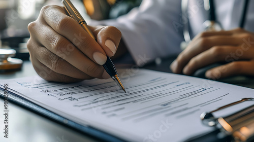 Hand signing on e-document to authorize medical treatment in healthcare systems.