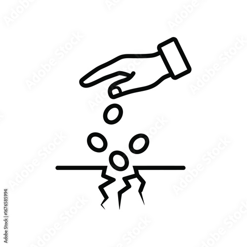 Hand Sowing Seeds: A simple graphic illustrating the act of planting, where a hand carefully sows seeds into a cracked ground, representing growth.