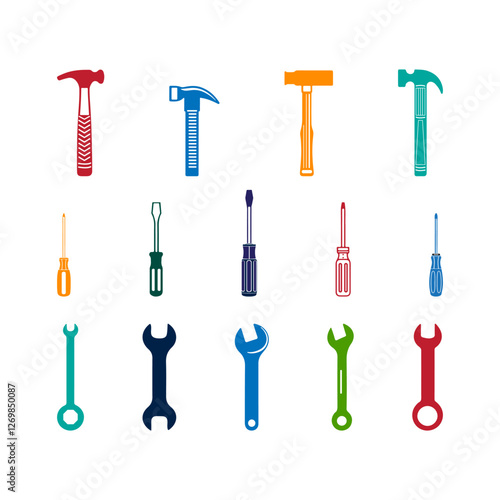 Hand tools icon set for repair and maintenance themes.