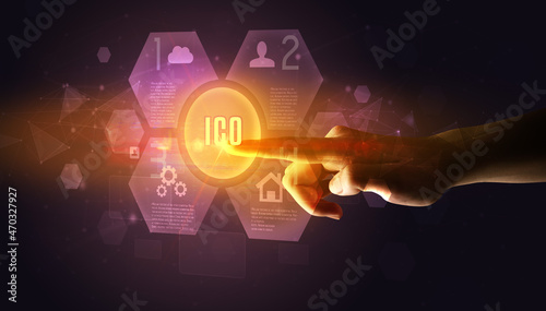 Hand touching digital button concept