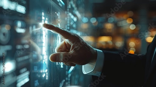 Hand Touching Digital Interface With Data Analytics