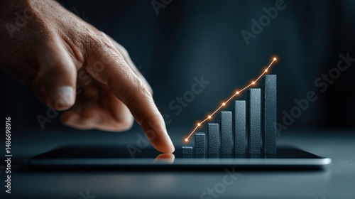 Hand Touching Tablet with Graph Growing and Business Success Concept