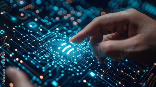 Hand touching Telecommunication network and wireless mobile internet technology with 5G LTE data connection of global business, fintech, blockchain