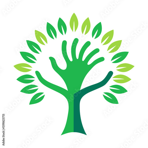Hand Tree Logo Icon for Nature, Growth, and Environmental Awareness on White Background