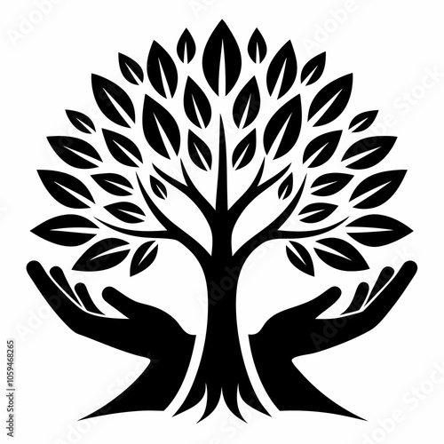 hand tree logo natural hands tree wellness concept. Logo, symbol, icon, illustration, vector, template, design isolated on white background