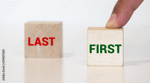 Hand turns dice and changes the word last to first