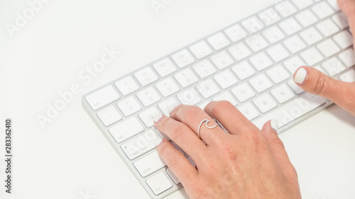 Hand typing on keyboard