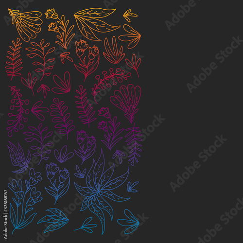 Hand vector drawn floral, leaves elements. Pattern for logo, greeting card, wedding design.