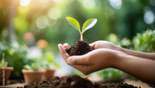 hand with gardening shovel, symbolizing growth, wellness, and nurturing new life