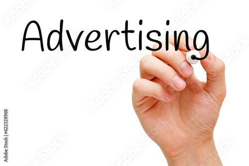 Hand writing Advertising with black marker on transparent wipe board.