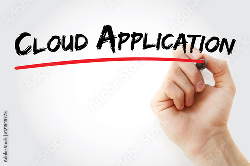 Hand writing Cloud Application with marker, concept background