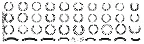 Hand writing Laurel wreath, shield, wing, ribbon, and banners vector set. Laurel wreaths, shields, wings, ribbons illustration for awards, heraldry, logos, badges, and branding designs vector