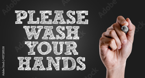 Hand writing the text: Please Wash Your Hands