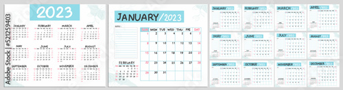 hand written Calendar 2023 week start Sunday corporate design planner template on the green pastel minimalism background