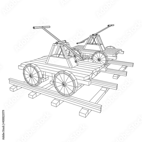 Handcar transportation. Draisine or rail vehicle. Wireframe low poly mesh vector illustration.